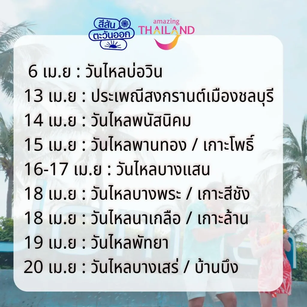 ใกล้เข้ามาแล้วสำหรับ Songkran Festival วันสงกรานต์ที่ทุกคนรอคอย สำหรับปีนี้ใครที่อยากออกไปเที่ยววันไหล แล้วยังไม่รู้จะไปที่ไหน ทางเราจะมาแนะนำวันไหลที่ ชลบุรี ให้ทุกคนได้ทราบกัน และนอกจากนี้เราจะมาพูดถึงประวัติความเป็นมาของวันสงกรานต์หรือประเพณีวันปีใหม่ไทยให้ทุกคนได้รู้กันอีกด้วย